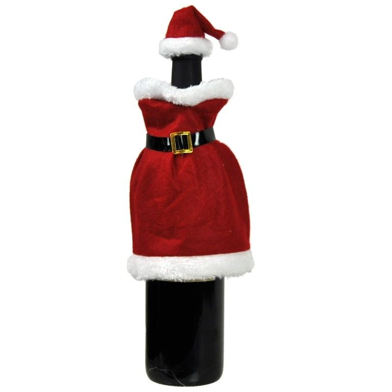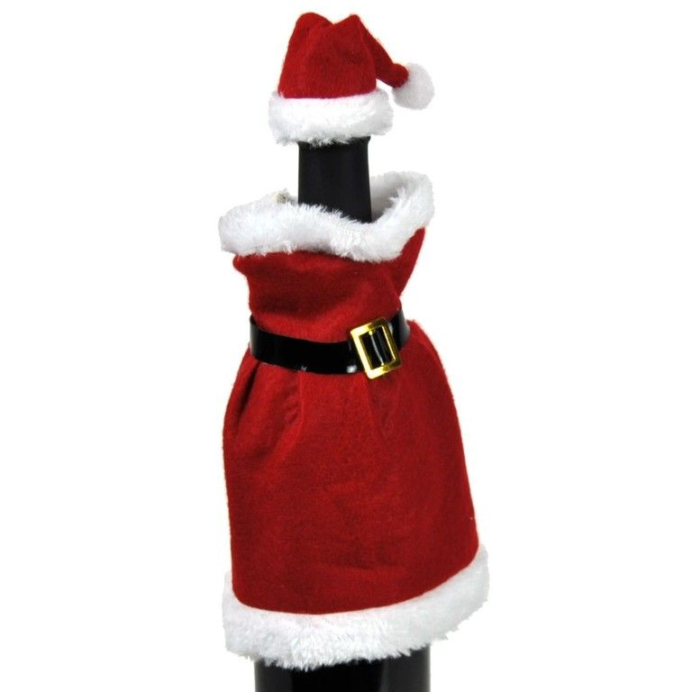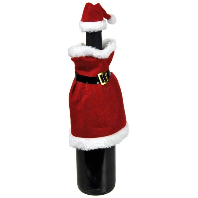 Leuke aanvulling voor een Kerstcadeau. Neem een wijnfles en doe deze Kerstjurk outfit er over heen. Nu heb je een wijfles met een schitterende Kerstversiering eromheen.