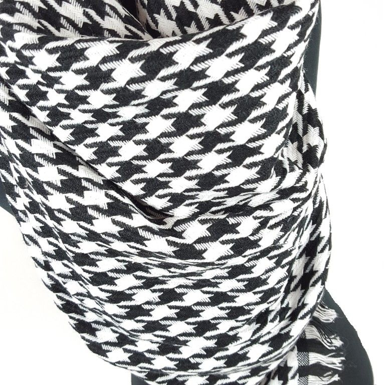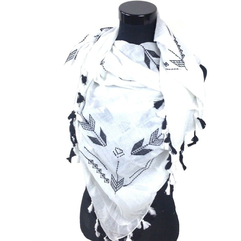 S_2542001 - DRIEHOEK SJAAL ZALM BOLLETJES EN FRANJES ZWART (1st)