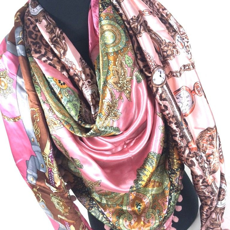 S_2149007M - LUXE DRIEHOEK SJAAL 2-ZIJDIG ROZE / CREME / TIJGER / BLOEM (1st)