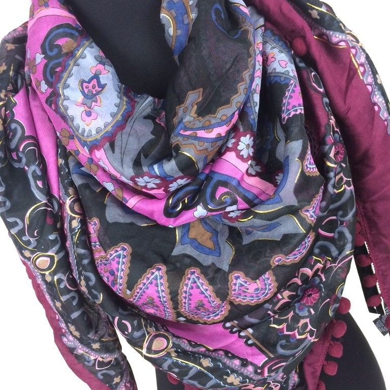 S_2225310 - LUXE DRIEHOEK SJAAL BORDEAUX/ROZE (1st)