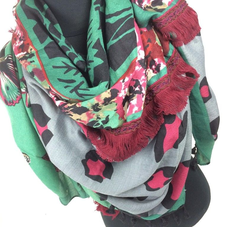 S_2104007C - LUXE SJAAL 2-ZIJDIG MINT/BLAUW/BLOEM (1st)