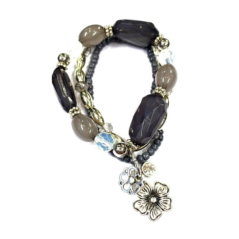 S_600087 - IBIZA LOOK ARMBAND ZWART/GRIJS STRASS (1st)