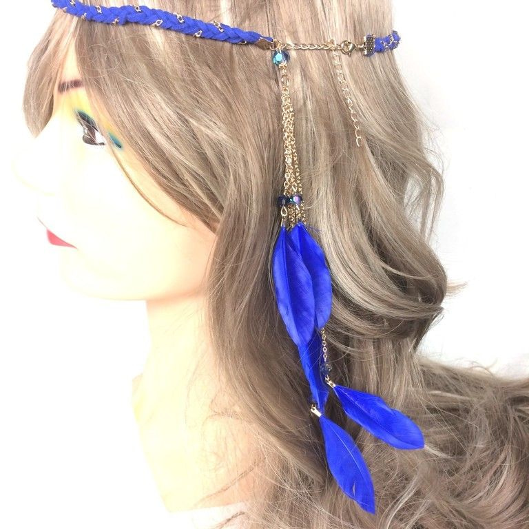 S_600112E - IBIZA LOOK GEVLOCHTEN HAARBAND MET VEREN BLAUW (1st)