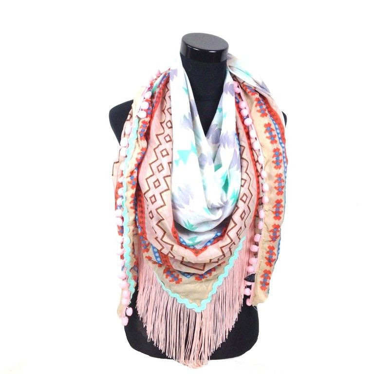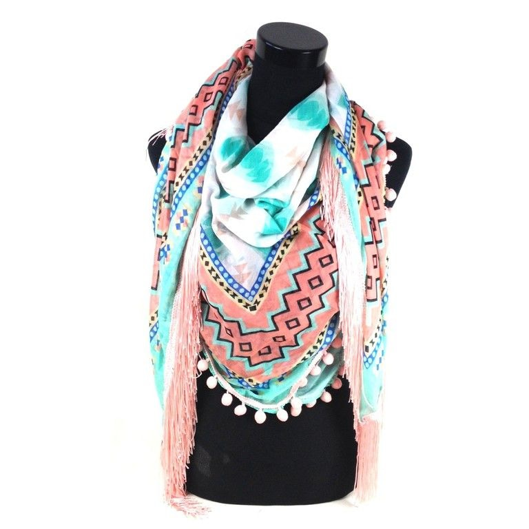 S_2150508 - LUXE DRIEHOEK SJAAL FRANJES/VEREN/KRALEN ZALM (1st)