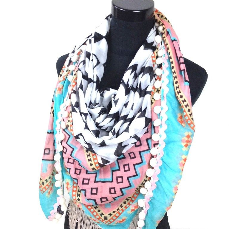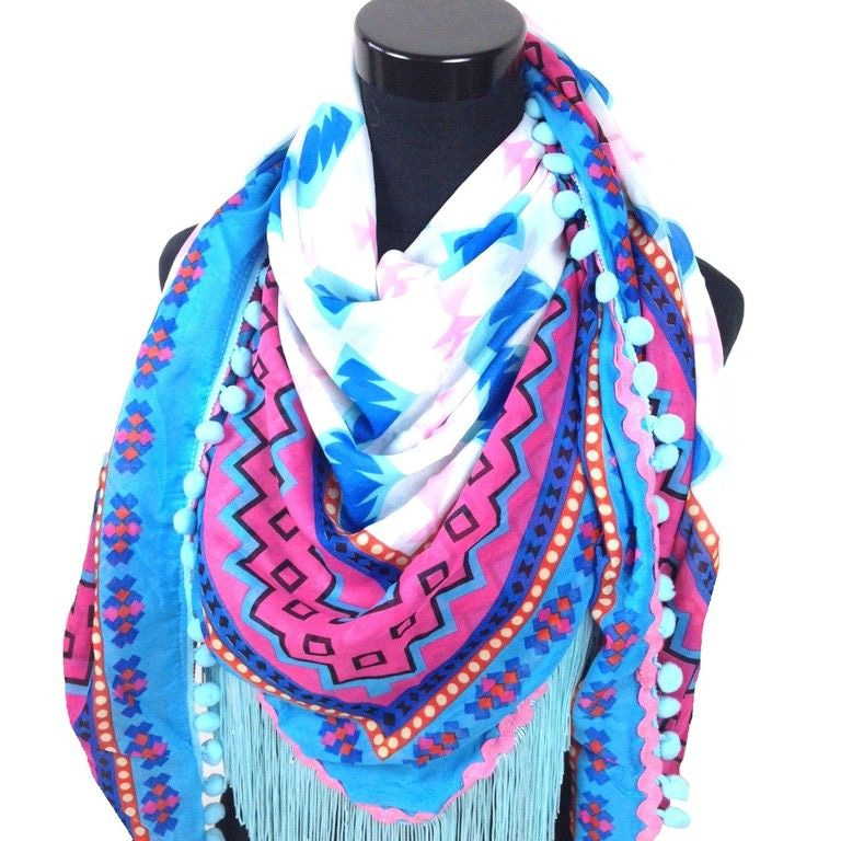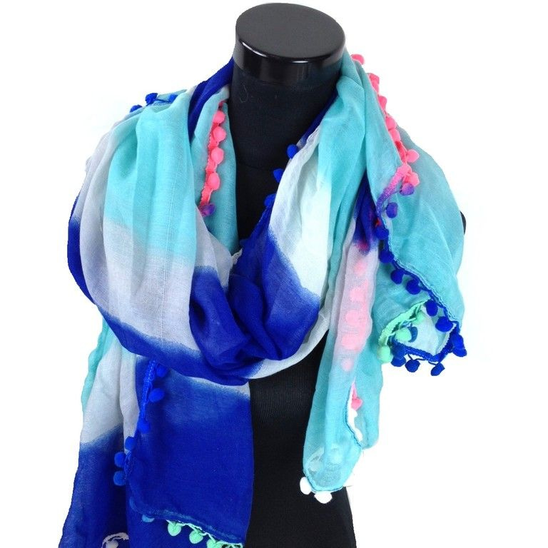 S_2457200 - LUXE SJAAL MET BOLLETJES/ FRANJES TURQUOISE (1st)
