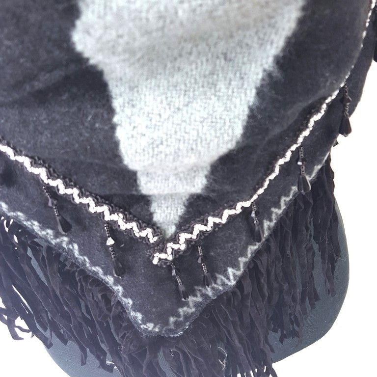 S_60300A - LUXE PONCHO ANTRACIET MET FRANJES - MODEL STER (1st)