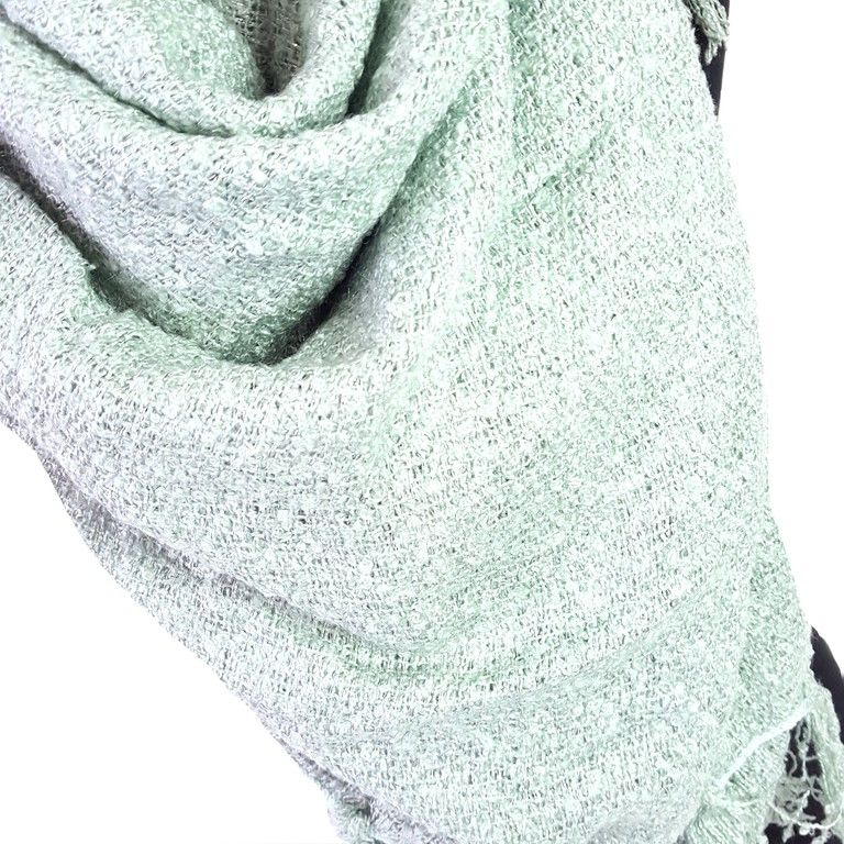 S_2606407 - SJAAL / OMSLAGDOEK MINT MET KWASTJES - MODEL ZILVER DRAAD (1st)
