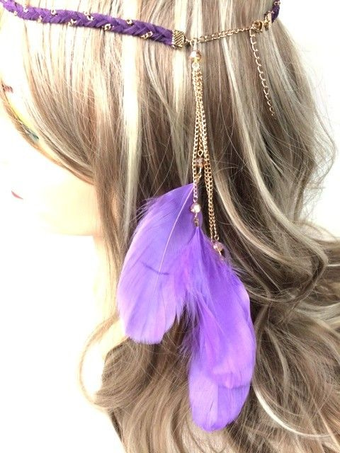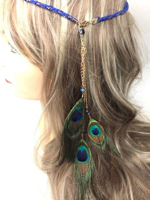 S_600029F - IBIZA LOOK GEVLOCHTEN HAARBAND BLAUW MET PAUWENVEREN (1st)