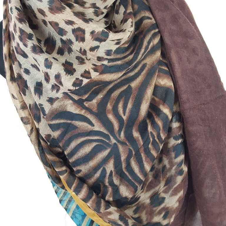 S_2516405 - SJAAL OLIJFGROEN MET KWASTJES - MODEL PANTERPRINT (1st)