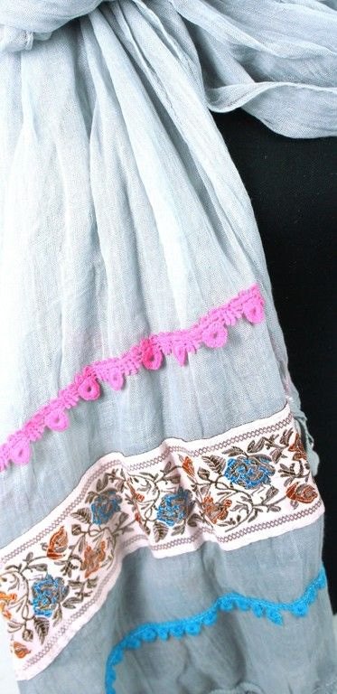 S_2601900 - LUXE SJAAL BLOEMEN MET FRANJES - GRIJS (1st)