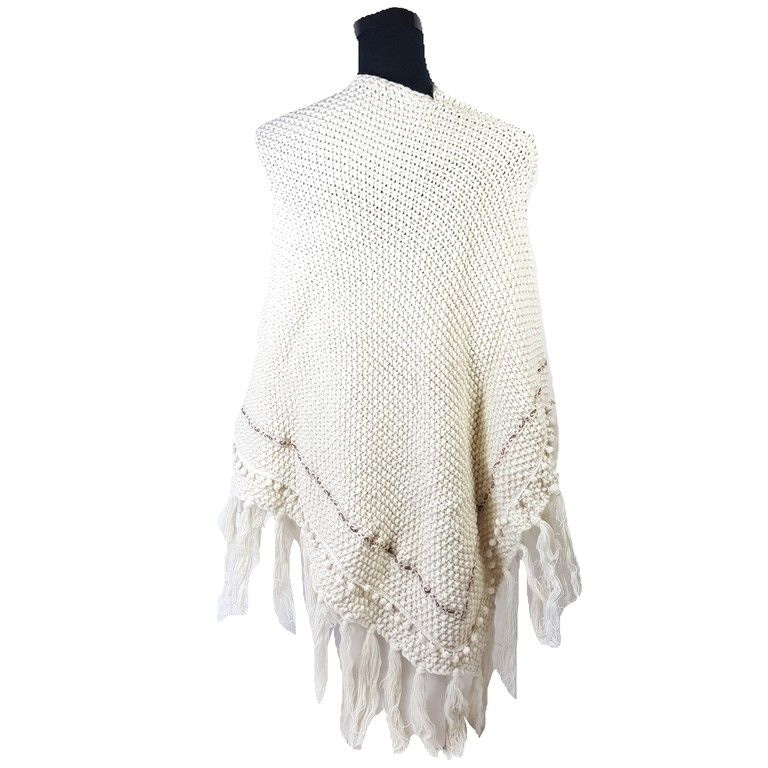 S_60300C - LUXE PONCHO CREME MET FRANJES - MODEL STER (1st)