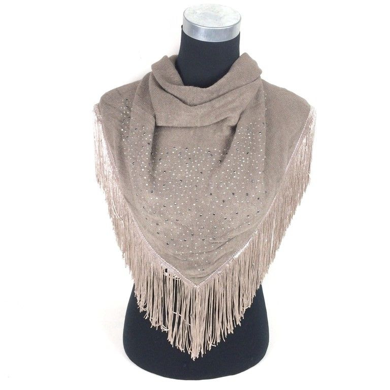 S_811437 - LUXE DRIEHOEK SJAAL TAUPE MET FRANJES (1st)