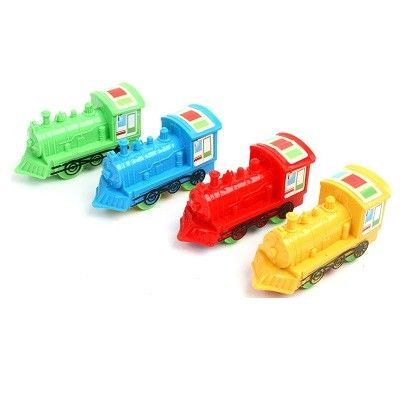 Leuke kleurrijke pull back locomotieven. Trek de trein naar achteren en laat hem los.. en vervolgens rijdt de trein vanzelf naar voren. wordt in mix kleuren geleverd.