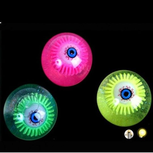 Stoere Lichtgevende Stuiterballen voorzien van ogen. Diameter 6.5 Cm. Verpakt in een Display doos.