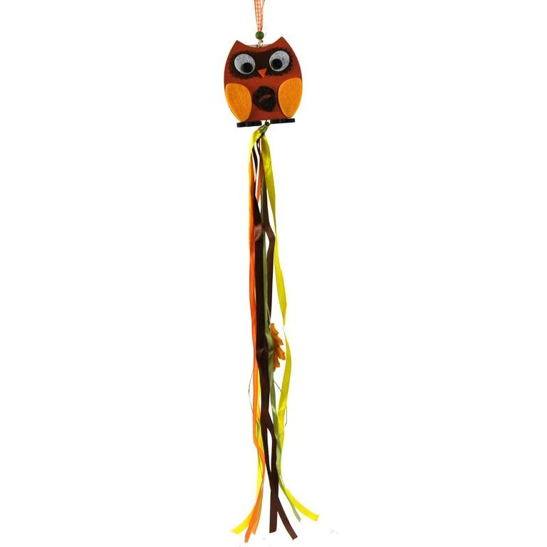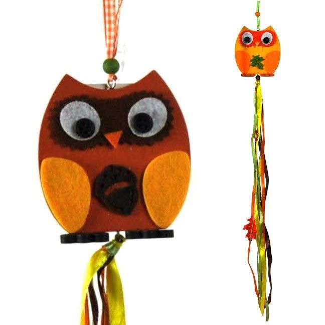 Mooie decoratie hanger in de vorm van een uil. Deze hanger heeft een houten uil aan de bovenkant en lange lintjes/franjes aan de onderzijde.