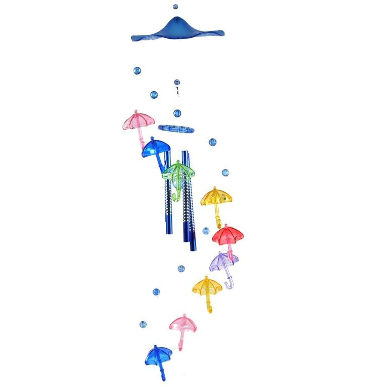 Een mooie windorgel met allemaal parapluutjes. Hang de windbel buiten en laat de wind er lekker doorheen waaien. De wind zorgt voor een schitterend orkest.