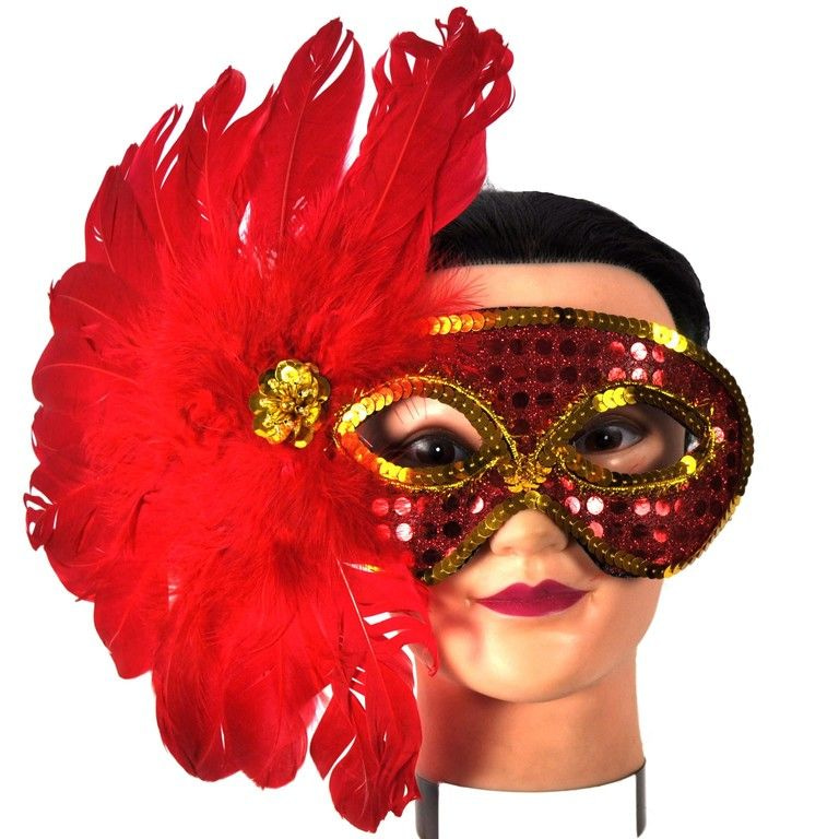 Een schitterend feestmasker voor evenementen, carnaval en verkleedfeesten. Dit masker is flexibel en vormt lekker met het gezicht mee. Aan de zijkant van het masker zitten sierlijke rode veren.