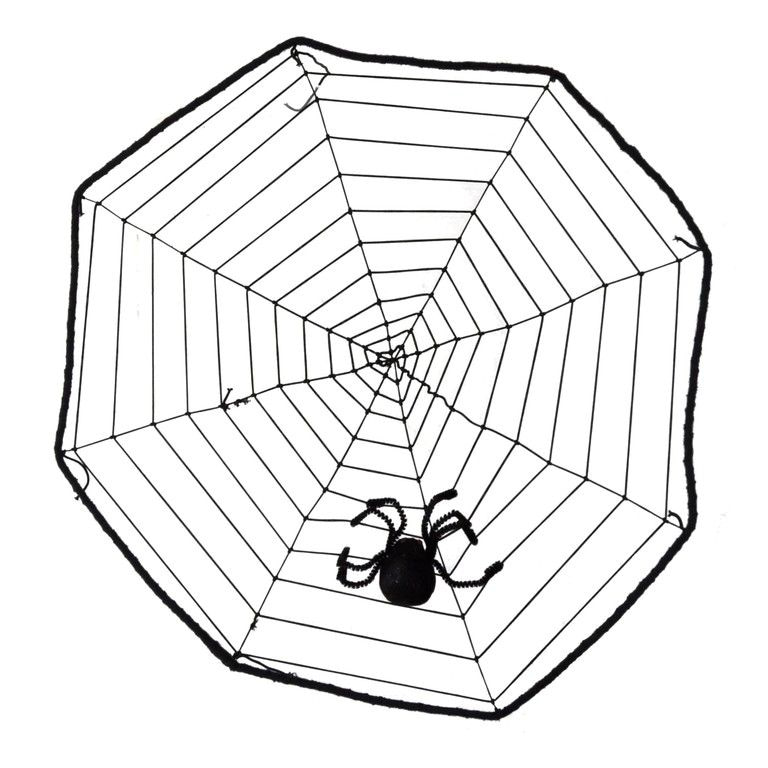 Een groot decoratie spinnenweb van circa 38 cm. doorsnee. Op het web zit tevens een spin. Leuk als decoratie bij themafeesten, carnaval en Halloween.