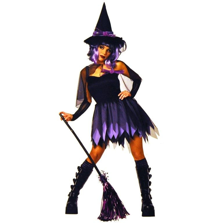 HEKSEN KOSTUUM ZWART/PAARS VOOR KINDEREN - MAAT 146