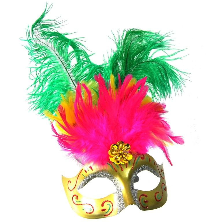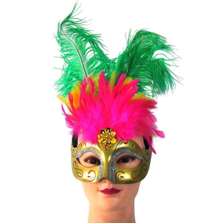 Een schitterend feestmasker voor evenementen, carnaval en verkleedfeesten. Dit masker is voorzien van glitters op de voorkant en kleurrijke veren aan de bovenkant.