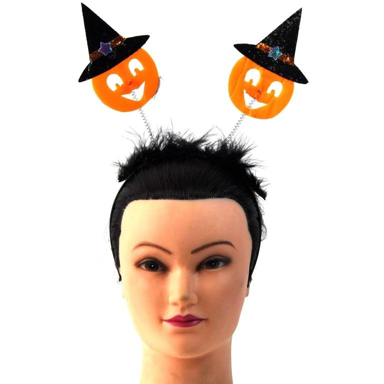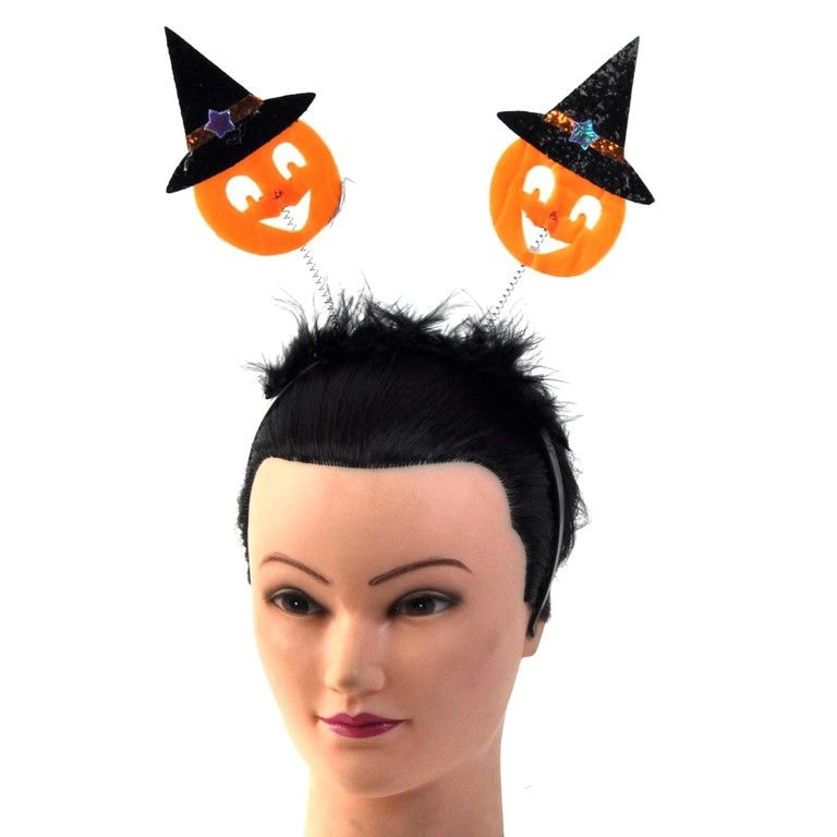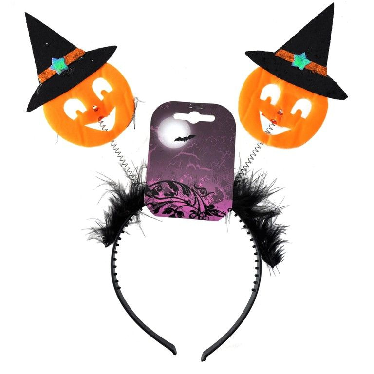 Mooie haarband met daarop twee Halloween pompoenen met een heksenhoed op.