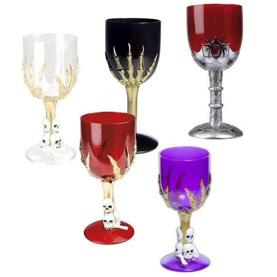 Duistere kelken met klauwen, doodskoppen of spinnen. De kelken worden in verschillende kleuren en uitvoeringen geleverd.