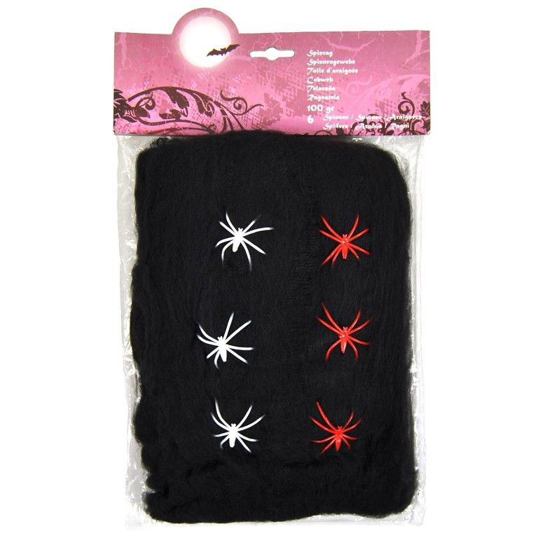 100 GRAM DECORATIE SPINNENRAG MET 6 SPINNEN - ZWART (6st.)