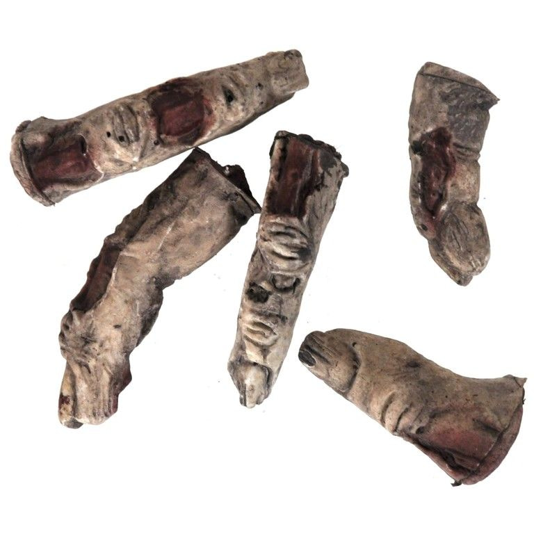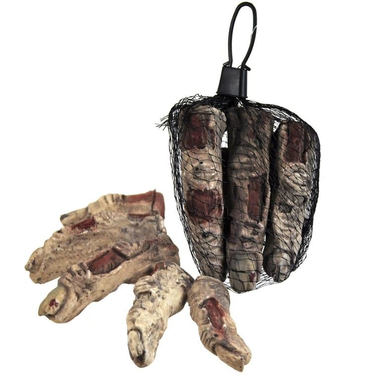 Oude verrotte afgehakte vingers gezamenlijk verpakt in een netje. Leuk als decoratie tijdens Halloween of als fop artikel om mensen te laten schrikken.