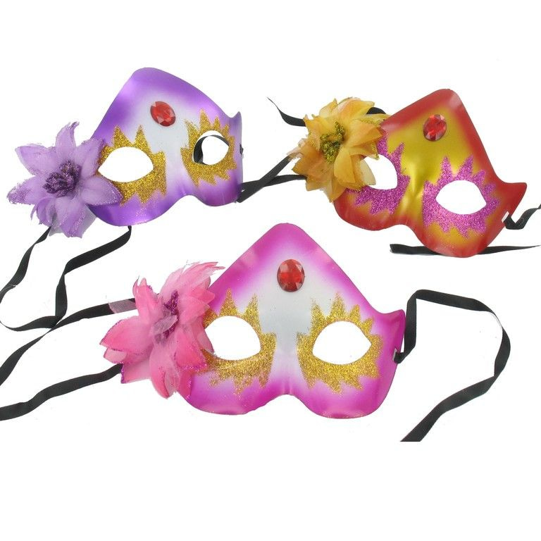 Een gezichtsmasker in Venetiaanse stijl. Dit masker bedekt een deel van je gezicht en heeft een mooie bloem aan de zijkant. Ideaal voor carnaval en andere feesten en evenementen.