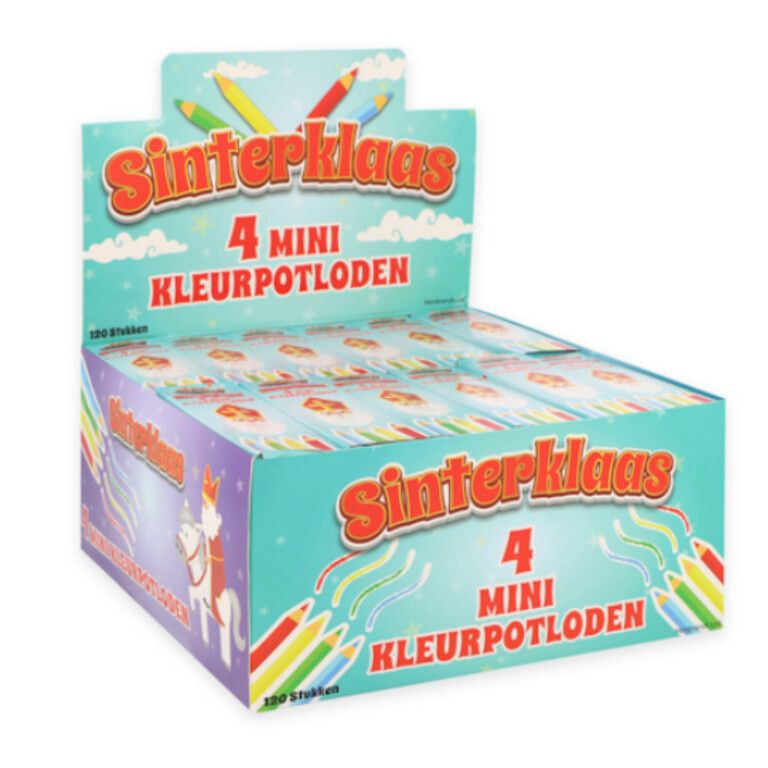 S35404 - 4-DELIGE SINTERKLAAS KLEURPOTLODEN IN DISPLAY (120st.)