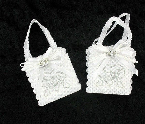 Klein tasje met de tekst "Our Wedding" erop. Ideaal voor kleine presentjes bij een bruiloft.