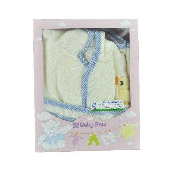 Zeer schattige kinderbadjas, voorzien van een schattig eendje als opruk. Leuk verpakt in mooie doorkijkdoos. Ideaal cadeau voor de kleine kinderen.