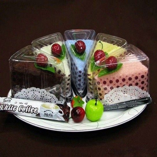 Erg leuk gift artikel, deze handdoek in de vorm van een gebakje. Schitterend cadeau.
