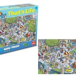 That’s Life Puzzel - Village, 1000 stukjes. Ontdek wat de mensen op het Franse pleintje beleven! De that's life puzzels van Goliath vertonen de leukste, chaotische afbeeldingen, midden uit het leven.
