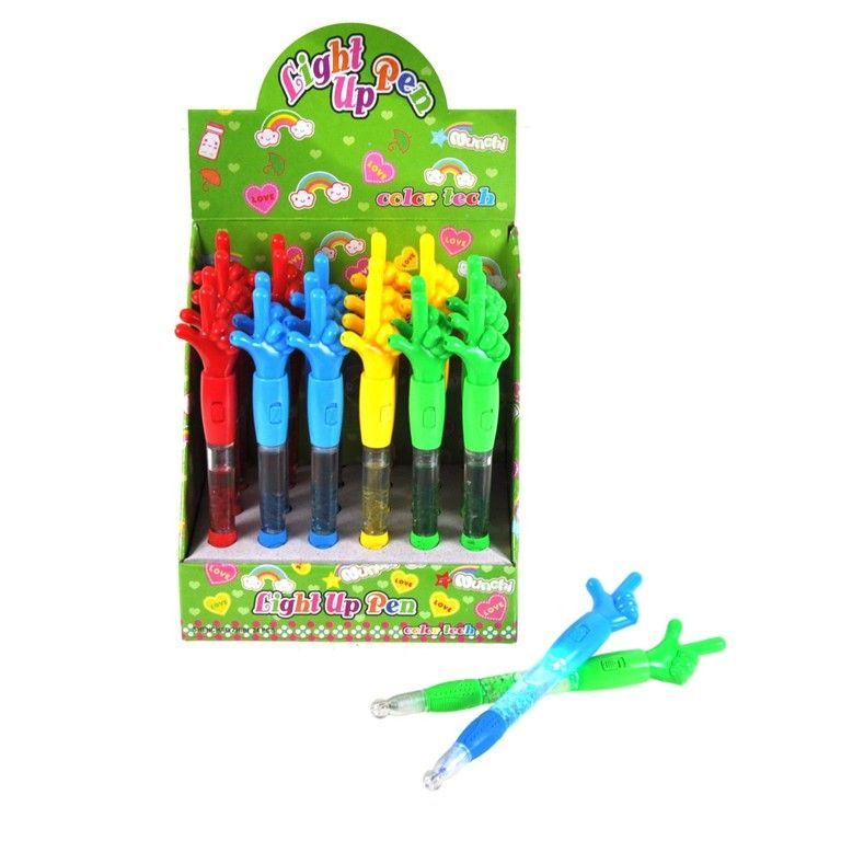 Wat een gadget deze lichtgevende handen pen. Deze pen geeft tevens licht, op twee verschillende standen.