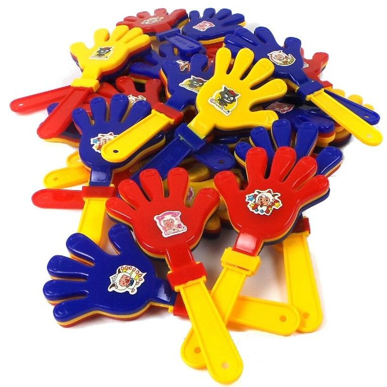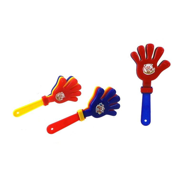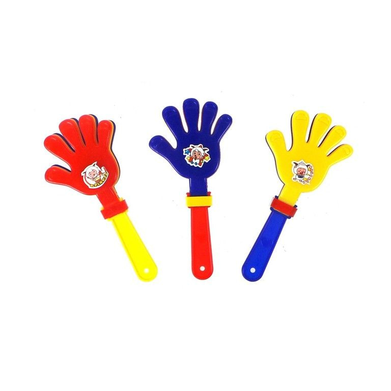 Simpel maar leuk, de bekende klaphandjes. Ideaal te gebruiken bij (kinder)feestjes, de carnaval etc. Elk kind is gek op herrie maken. Hartstikke leuk als grabbelton artikel.