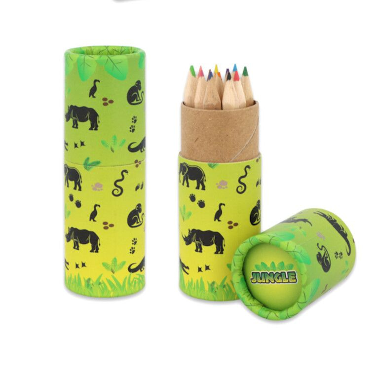 12x KLEURPOTLODEN IN KOKER: MODEL: JUNGLE DIEREN - IN DISPLAY (48st.)