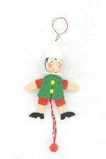 Trek aan het koord en de handen en de voeten van de Pinoccio gaan bewegen. Leuk voor boven het bed van kleine kinderen.