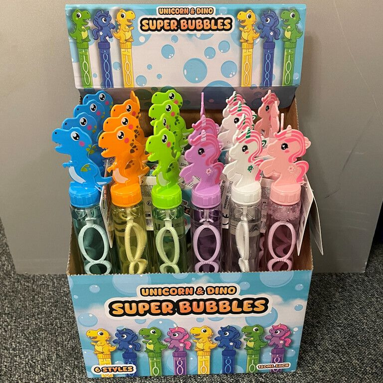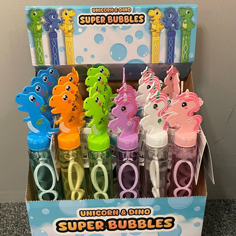 Maak van elke zomerse dag een feest met deze kleurrijke Unicorn & Dinosaurus Bellenblaas Staven. Deze staven zijn een gegarandeerde hit bij kinderen en een perfect impulsaankoop-artikel voor uw winkel, marktkraam of recreatiepark. De displaydoos bevat een aantrekkelijke mix van twee van de populairste thema's van dit moment: magische eenhoorns en stoere dinosaurussen.