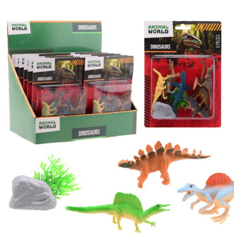 ANIMAL WORLD - DINOSAURUS SPEELSET 8-DELIG OP KAART - IN DISPLAY (12st.)