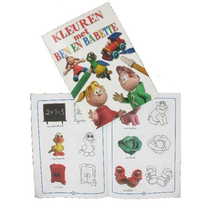 Een kleurboek met verschillende soorten plaatjes. Teken ze na zoals het voorbeeld weergeeft. Gezellig met Ben en Babette