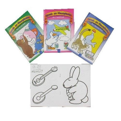Kleur en speel spelletjes met, Leeuw Leo, Minneke Poes, Eend Kwak en Bruno Beer.