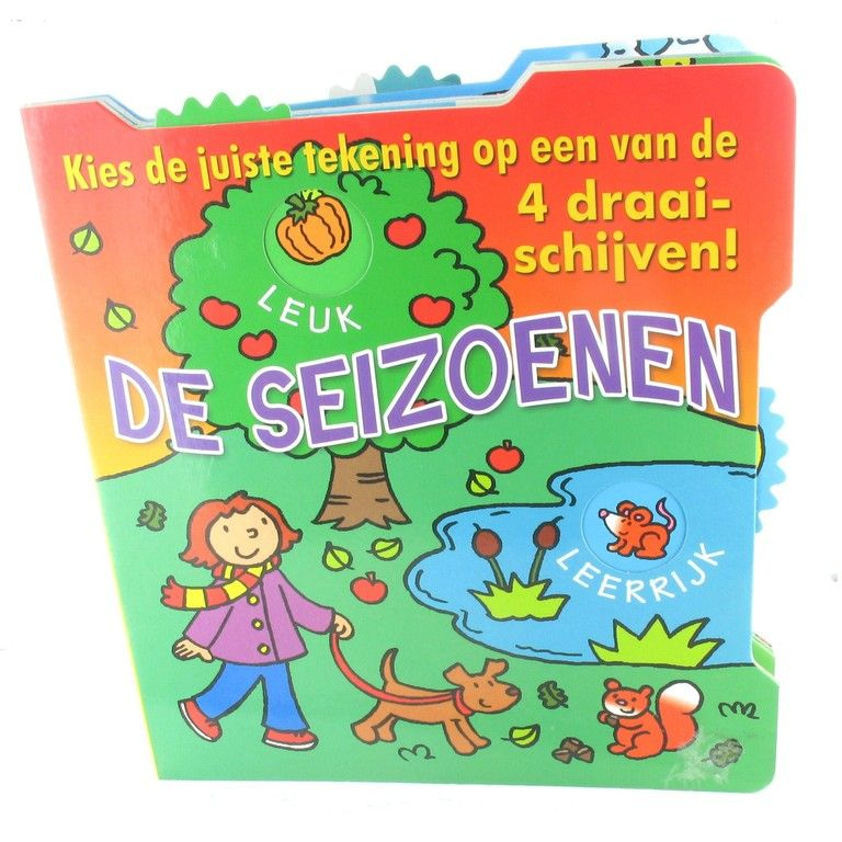 Spelen met seizoenen met dit boek. Met korte verhaaltjes kies je de juiste plaatjes. Draai aan de schijf totdat het juiste plaatje bij het verhaaltje komt.