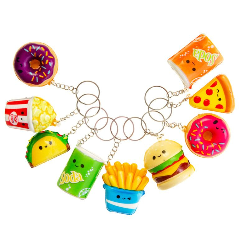 Leuke Squishy Fastfood Sleutelhangers, war je heerlijk in kunt knijpen.