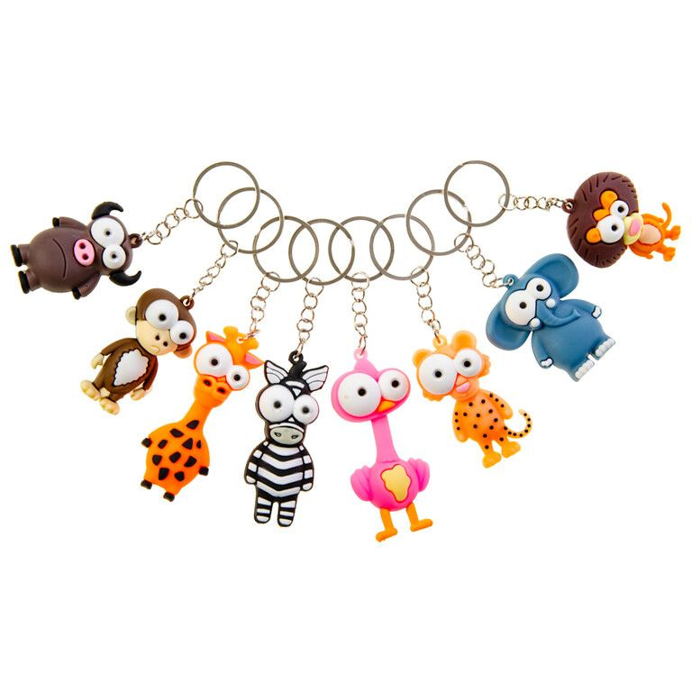 Funny Dieren Sleutelhangers - Mix dieren met grote ogen (48st.)