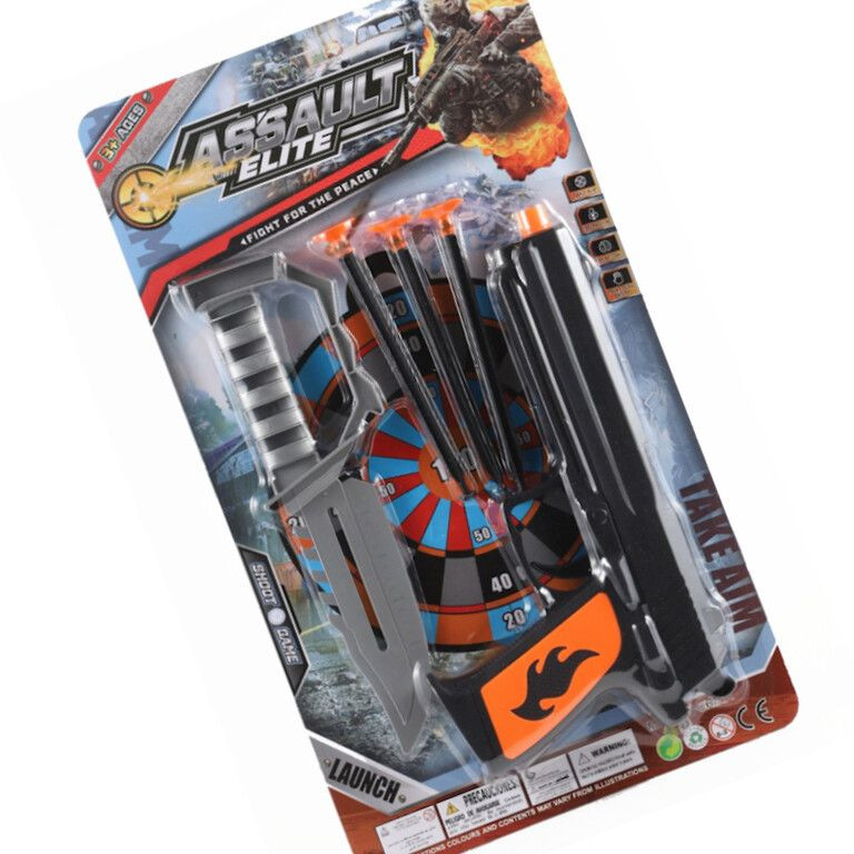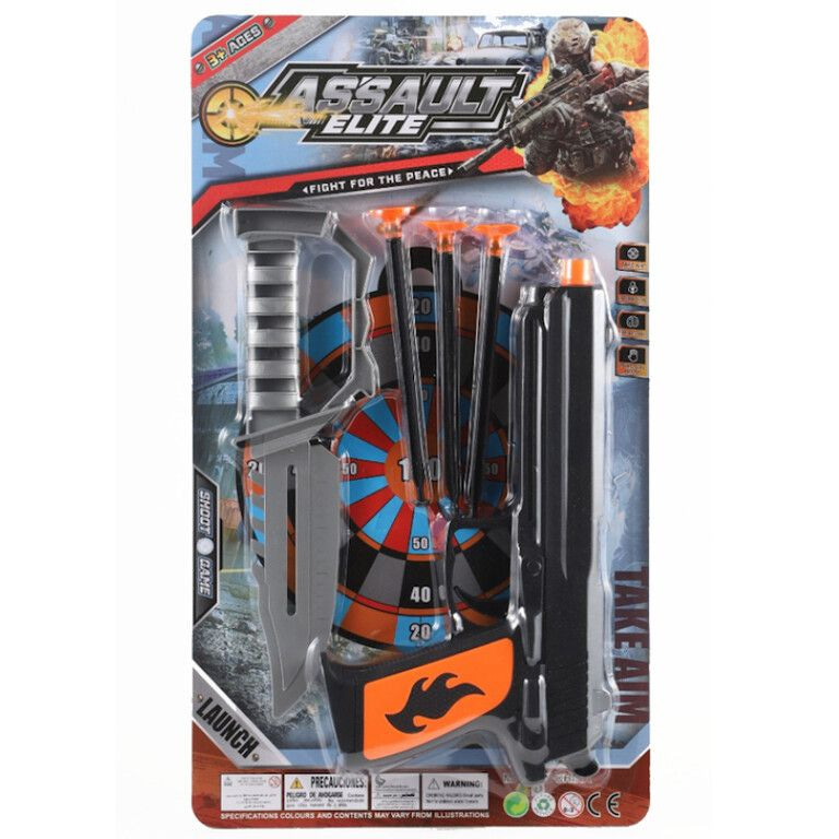 Breng actie en avontuur naar uw schappen met deze stoere Assault Elite speelgoed set. De set bestaat uit een gaaf speelgoedpistool, veilige pijltjes met zuignappen en een tactisch speelgoedmes, allemaal aantrekkelijk gepresenteerd op een opvallende grote blisterkaart (21 x 37 cm).