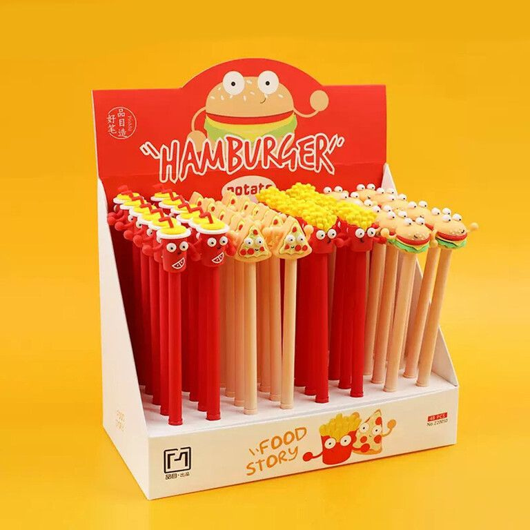 Op zoek naar een smakelijke toevoeging voor uw kassa- of impulsassortiment? Deze opvallende Fastfood Balpennen zijn een absolute hit bij zowel kinderen als volwassenen! Geleverd in een handige toonbankdisplay van 48 stuks, direct klaar voor de verkoop.