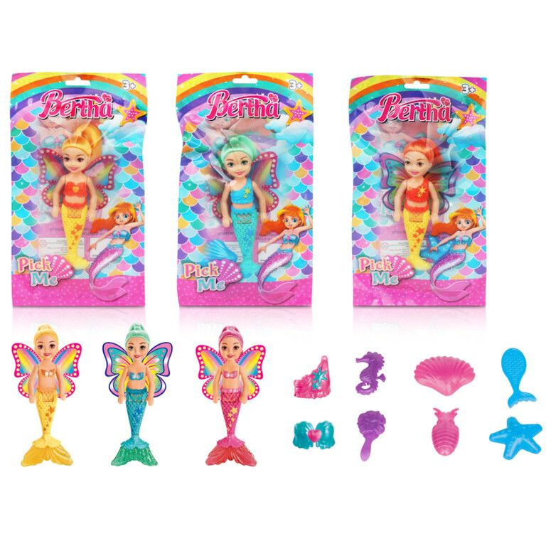 Betover uw klanten met deze prachtige Zeemeermin poppen in giftbag. Dit artikel is de perfecte omzetmaker voor uw winkel en tevens ideaal als weggevertje, grabbeltoncadeau of kinderfeestje-souvenir. Elke zeemeermin heeft een afmeting van 16 cm, wordt geleverd in een vrolijke mix van kleuren en is afzonderlijk verpakt in een kleurrijke giftbag. Hierdoor is het direct klaar voor de verkoop of om feestelijk uit te delen.