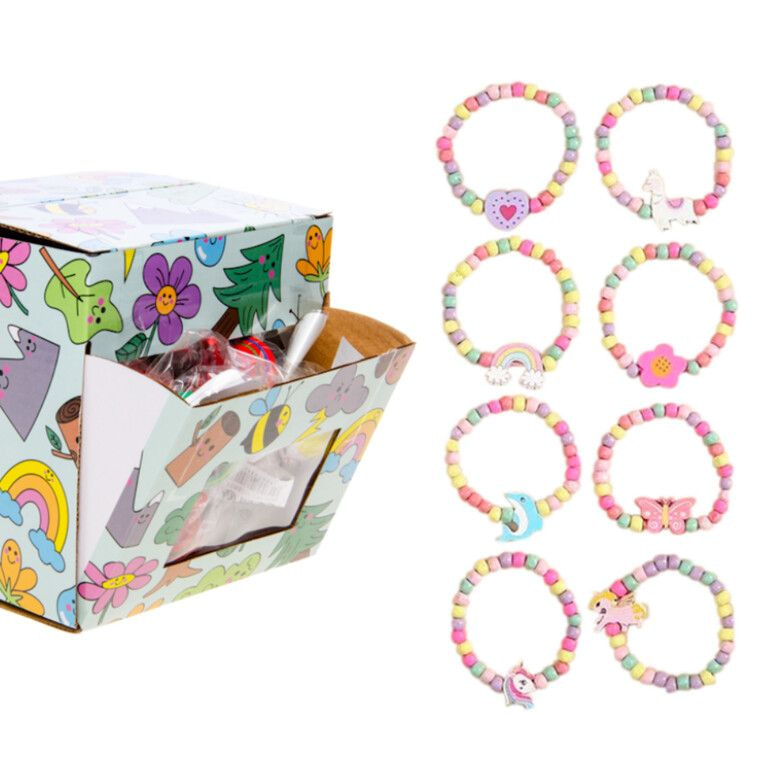 Geef uw toonbank direct meer kleur en stimuleer impulsaankopen met deze houten elastische meiden armbandjes. Dit artikel wordt geleverd in een overzichtelijke displaydoos van 36 stuks, speciaal ontworpen voor de snelle handel en een hoge marge.