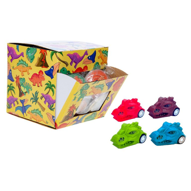 Verhoog uw omzet met deze snelle en aantrekkelijke Pull Back Dinosaurus Hoofden. Verpakt in een direct inzetbare display van 50 stuks, waardoor ze perfect zijn voor impulsaankopen op de toonbank. Trek het dino hoofd naar achteren, laat los en hij schiet vanzelf vooruit! Een fantastische toevoeging voor speelgoedwinkels, pretparken, kermissen en grabbeltonnen. Geleverd in een vrolijke mix van opvallende kleuren.